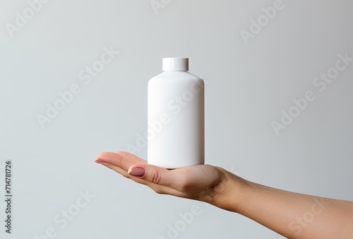 Mockup of female hands elegantly holding a jar of cosmetic cream, presenting a branding opportunity for cosmetic beauty products.