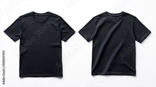 Mockup of two black t-shirts displayed for design comparison on a plain background
