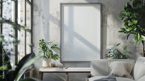 Mockup poster frame close up in interior background, 3d render. Living wall