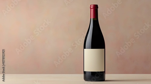Mockup product concept, A minimalist image featuring a wine bottle with a blank label on a simple background, evoking sophistication and potential for customization.