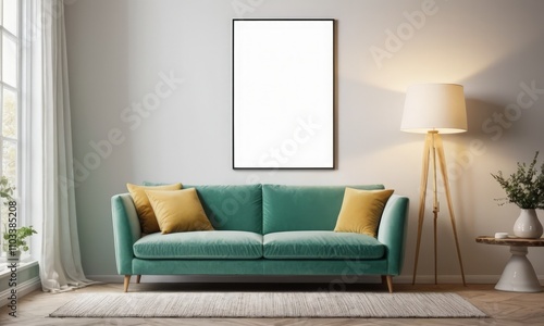 room, poster, furniture, painting, light, gold, mint, interior design, living room, modern, minimalist, contemporary, green, chair, plant, rug, canvas, serene, calm, peaceful, inviting, cosy, elegant, sophisticated, clean, organised, fresh, natural, earthy, organic, scandinavian, nordic, home decor