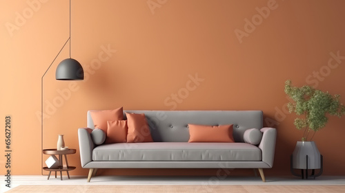 mockup,interior with brown sofa. 3d illustration generative ai
