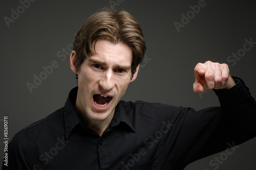 head shot, adult, anger, angry, black background, boy, business, businessperson, business suit, businessman, caucasian, ceo, copy space, cut-out, finger, grey background, photogenic, isolated, male, man, manager, model, nag, one person, people, person, pointing, portrait, professional occupation, scold, scolding, studio shot, suit, waist up, well-dressed, young adult