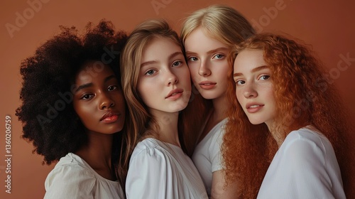 model, woman, group, standing, studio, brown, background, posing, young, promoting, lady, different, ethnicity, gorgeous, natural, real, team, african, business, trendy, female, three, caucasian, health, friends, looking, equality, lifestyle, dress, friendship, skin, portrait, american, isolated, beauty, afro, white, attractive, black, stylish, adult, person, style, diverse, casual attire, summer, brunette, fashion, together