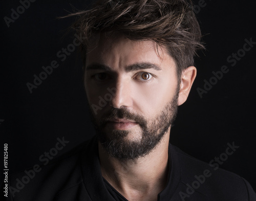 man, guy, funky, beauty, man, barbed, moustache, hair salon, black shirt, light, colours, colourful, shade, perfume, pharmaceutical, hairstylist, make-up, look, face, face, sidelight, short hair