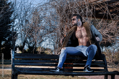 pose, male, gay, trousers, denim, fashion, sunglasses, young, portrait, lovely, nature, glasses, person, people, hair, summer, autumn, face, outdoors, happy, 1, forest, sun, muscle, muscular, fitness, nudity, bodybuilder, torso, athlete, dark, fort, guy, art, fine-looking, fit, health, bicep, athletic, blue, man, grain, grass, model, chest, muscular, sexy, cutie