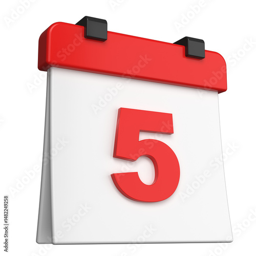 Modern 3D simple calendar icon date 5th isolated on Transparent Png Background