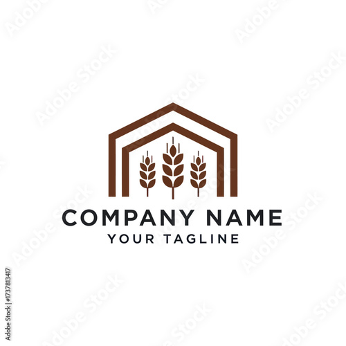 wheat, grain, stalk, agriculture, farm, house, barn, logotype, symbol, text, company, cereal, minimalist, modern, simple, clean, flat, design, vector, graphic, illustration, brown, black, corporate, geometric, outline, stylised, professional, white, background, isolated, branding, identity, business, food, industry, farming, agricultural, bakery, production, marketing, digital, brand, drawing, icon, element, template, layout, print
