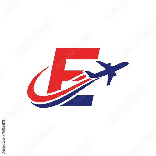 Modern Airline Logo With E Letter And Airplane Trail Symbolizing Travel And Speed