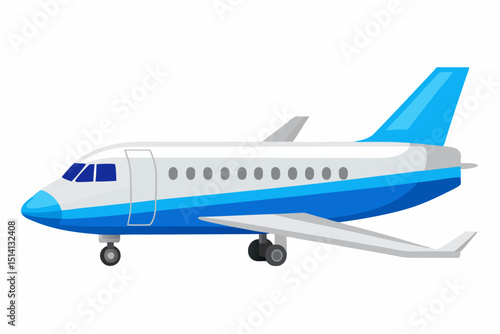 Modern airplane design blue and white jet aircraft