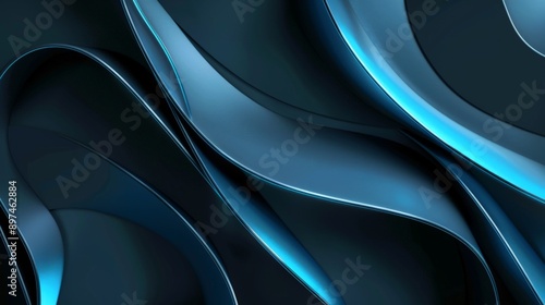 Modern and elegant design featuring abstract dark blue background with wavy shapes and reflections