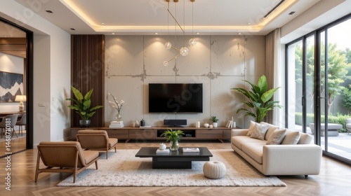 Modern and Elegant Living Room Design with Natural Light and Stylish Furniture in Neutral Tones