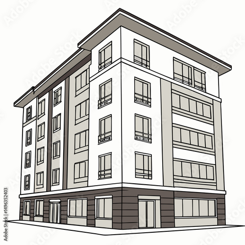 Modern apartment building architectural design illustration