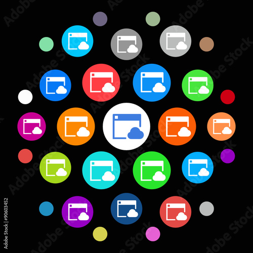 cloud, browser, browsing, computing, computer, network, domain, hosting, web page, website, online, storage, media, signs, symbol, multimedia, cyberspace, tech, device, technology, modern, app, business, buttons, icon, set, series, buttons, many-coloured, round, ios, circle, mobile, watch, pictogram, screen, vector