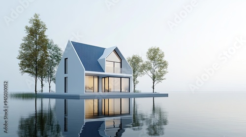 house, water, modern, architecture, lake, exterior, design, minimal, contemporary, home, building, glasses, window, sky, white, residential, structure, concept, property, real, estate, style, living, landscape, luxury, dream, simple, clean, elegant, peaceful, serenity, tranquil, calm, waterfront, minimalist, geometric, aesthetic, natural, tree, still, surface