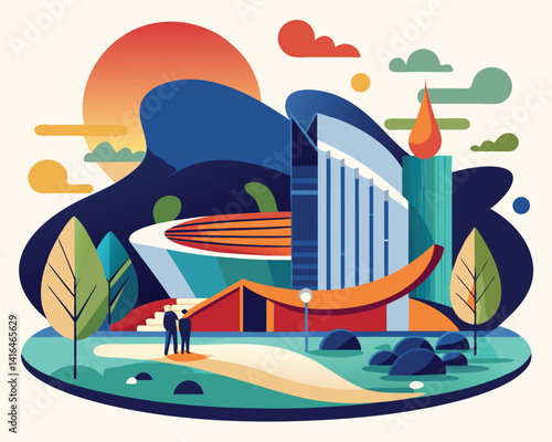 Modern Architecture Illustration. Geometric Shapes and Urban Design