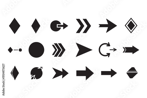 Modern Arrow Icon Set - Black Geometric Directional Symbols and Navigation Pointers - Abstract Vector UI Elements