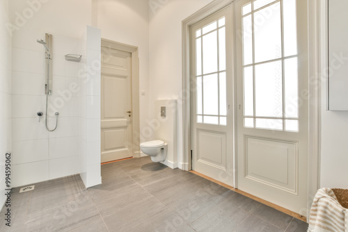 bathroom, interior, modern, light, window, white, tile, fixture, elegant, bright, airy, design, home, decor, minimalistic, contemporary, residential, hygiene, sanitary, privies, shower, flooring, door, glasses, grey, neutral, towel, basket, style, architecture, estate, property, renovation, real, house, luxury, simplicity, roomy, comfort, indoor, apartment, living, urban, sink, faucet, mirror, domestic