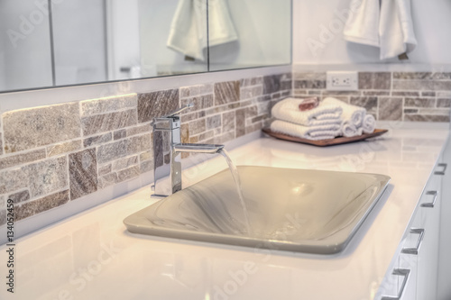 bathroom, faucet, kitchen, water, sink, flowing, wet, plumbing, flow, drain, backsplash, towel, mirror, laundered, basin