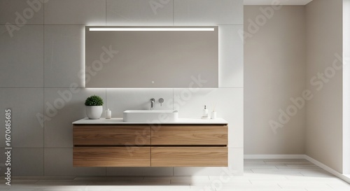 bathroom, interior, design, vanity, mirror, modern, contemporary, architecture, wooden, sink, minimalist, decor, elegant, luxury, clean, stylish, spa, serene, relaxing, lighting, fixture, faucet, counter, storage, drawer, home, house, apartment, white, grey, neutral, indoor, roomy, bright, fresh, airy, ambience, peaceful, wellness, simple, natural, calm, comfort, detail, aesthetic