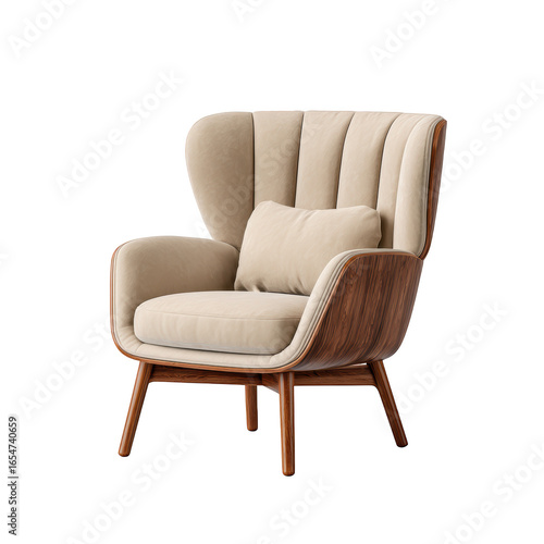 Modern Beige Armchair with Wooden Legs and Cushions Perfect for Cozy Living Room or Stylish Office Decor