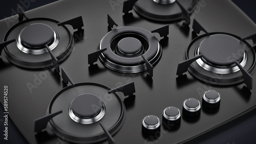 Modern black gas stove. 3D illustration