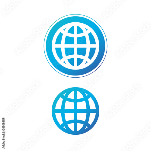 Modern blue globe icon in circle, earth or world icon. vector illustration isolated on white background.