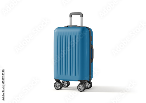 Modern Blue Hard Shell Luggage Suitcase with Spinner Wheels Isolated on White Background