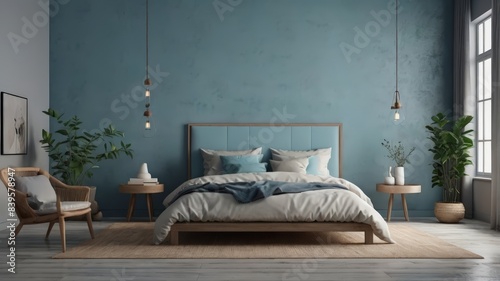 Modern Blue Living Room Interior Design. Interior of light living room with Blue sofa, coffee table