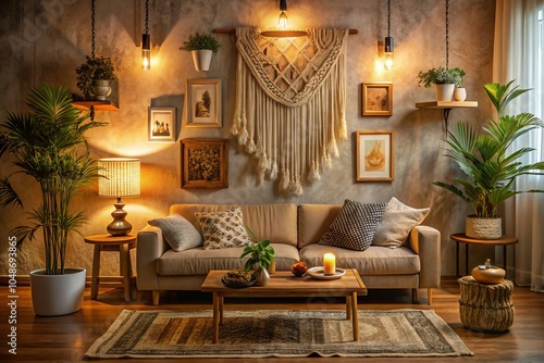 bohemian, living room, interior design, low light, photo, decor, macrame, accessory, modern, cosy, texture, aesthetic, home decor, furniture, atmosphere, creative, artistic, style, chic, elegance, comfort, unique, detail, ambience, contemporary, relaxing, inviting, lifestyle, visual, harmony, originality, craftsmanship, home, sophistication, fashion, trend, space, layout, warmth, calmness, personality
