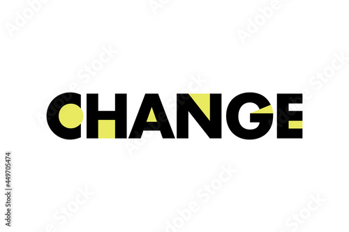 Modern, bold, vibrant typographic graphic design of a word "Change" with geometric shapes in yellow and black colors. Cool, urban, trendy graphic vector art.