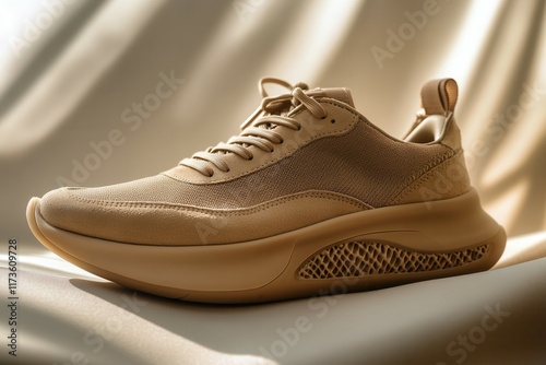 shoe, athletic, brown, modern, design, fashion, footwear, closeup, professional, sneaker, casual attire, comfort, style, fabric, texture, sole, silhouette, lace, soft, contemporary, trendy, apparel, sporty, elegant, light, background, aesthetic, walking, urban, fit, detail, footgear, air, dynamic, look, menswear, new, innovation, monochrome, neutral, lifestyle