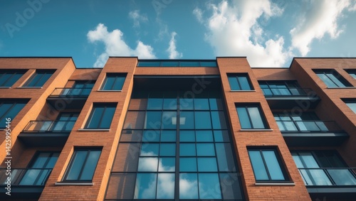 window, balcony, house, building, view, business, design, sky, city, home, wall, architecture, blue, geometric, street, glasses, modern, concrete, europa, apartment, new, futuristic, urban, steel, geometry, facades, architectural, property, residential, structure, perspective, contemporary, angle, ownership, tower, block, metallic, estate, condominium, detail, exterior, panel, window
