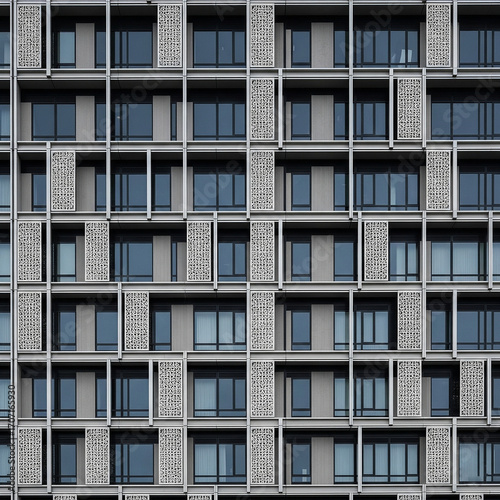 Modern Building Facade with Intricate Repetitive Geometric Patterns and Texture