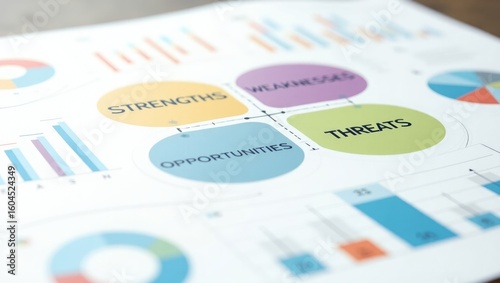 Modern Business SWOT Analysis Infographic with Colorful Data Charts – Corporate Strategy Planning and Report Presentation Template