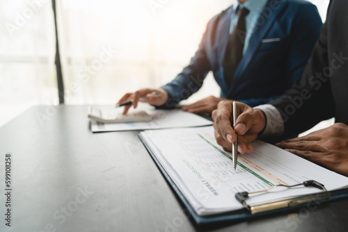 Modern businessmen are discussing, consulting and meeting about financial statistical partnerships. Discussing and finding information, calculating, analyzing charts and graphs in the office.