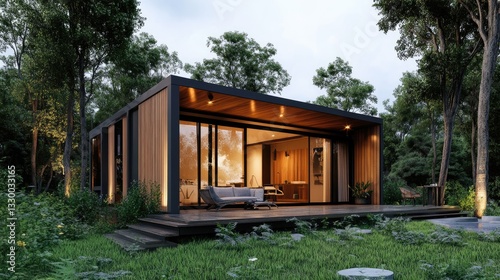 Modern Cabin in the Woods: Tranquil Evening Retreat