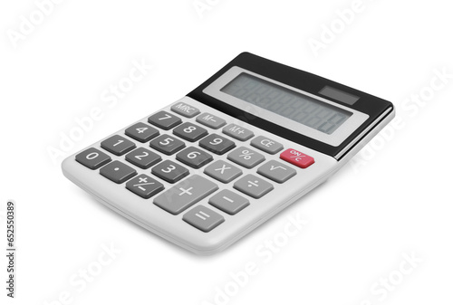 Modern calculator isolated on white. Office stationery