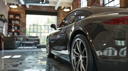 Modern car parked in spacious garage, ready for trade-in, showcasing clean and well-maintained interior.