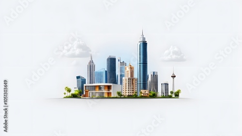 Modern city skyline with diverse architecture