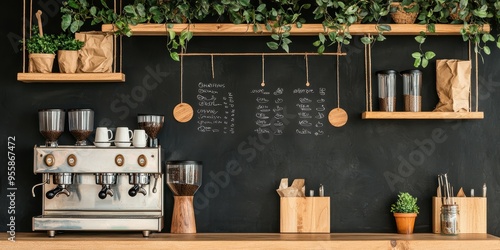 business, maker, barista, shelf, cafes, plant, espresso, modern, hot drink, bean, green, rustic, culture, house, design, menu, atmosphere, decor, break, lover, shop, wooden, beverage, bar, caffeine, blackboard, interior, cup, small, machine
