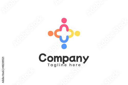 Modern colorful people group logo design vector template