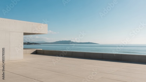 architecture, balcony, beach, beautiful, blue, building, clean, clear sky, concrete, contemporary, daylight, design, exterior, holiday, horizon, house, landscape, light, minimalist, modern, mountain, natural, nature, ocean, peaceful, perspective, resort, sea, seacoast, sky, summer, sun, sunlight, sunny, terrace, travel, vacation, view, water