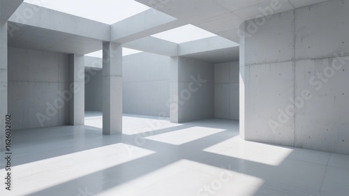 Modern Concrete Interior with Skylights and Pillars