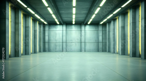concrete, room, interior, architecture, design, building, modern, minimalist, industrial, space, background, texture, wall, floor, lighting, fluorescent, light, column, pillar, empty, huge, roomy, clean, simple, geometric, abstract, background image, interior design, modern architecture, industrial design, empty space, abstract background, illustration, digital artwork, digital illustration, graphic design