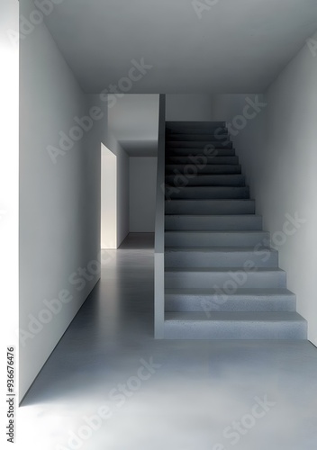 staircase, concrete, minimalism, interior, design, architecture, modern, house, home, building, style, hallway, grey, step, floor, wall, white, light, room, simple, clean, contemporary, empty, abstract, structure, line, geometric, shape