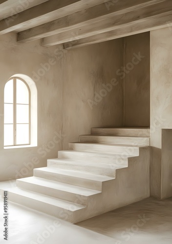 staircase, concrete, architecture, interior design, minimalism, modern, house, stair, room, home, building, design, contemporary, style, floor, window, light, white, grey, wall, ceiling, beam, arch, structure, simple, clean, line, geometric, shape