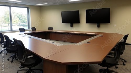 modern, conference, room, table, screen, business, meeting, interior, design, office, space, seating, creative, professional, collaboration, technology, work, environment, corporate, facility, empty, bright, wood, comfortable, stylish, contemporary, equipment, layout, window, workflow, productivity, calm, ambience, architecture, organisation, formal, arrangement, communication, engagement, sharpened, planning, teamwork, strategy
