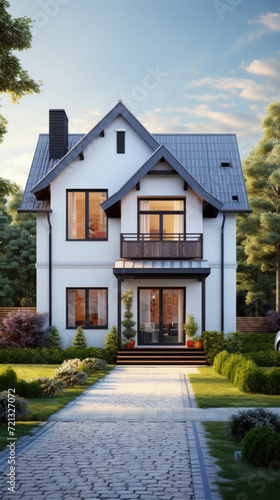 housing, home, exterior, architecture, residential, building, property, modern, grass, garden, design, villa, sky, lawn, green, estate, beautiful, contemporary, style, landscape, new, luxury, entrance, garage, construction, country, concept, dwelling, patio, project, evening, chalet, expensive, blue, lifestyle, stock, perspective, door, suburban, window, neighbourhood, summer, night, wood, view, suburb