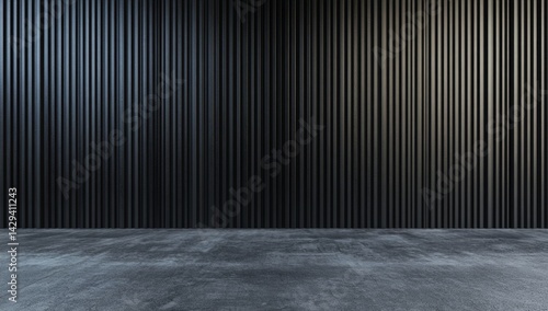 interior, design, minimalist, modern, dark, wall, panel, metal, concrete, floor, empty, space, room, studio, exhibition, gallery, presentation, product, display, industrial, contemporary, sleek, simple, geometric, neutral, textured, muted, tone, background, architecture, commercial, showroom, retail, photo, lighting, ambient, grey, black, brown, minimalistic